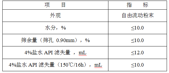 后附抗鹽聚合物降濾失劑技術(shù)指標(biāo)和性能特點(diǎn)。