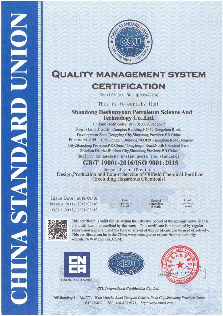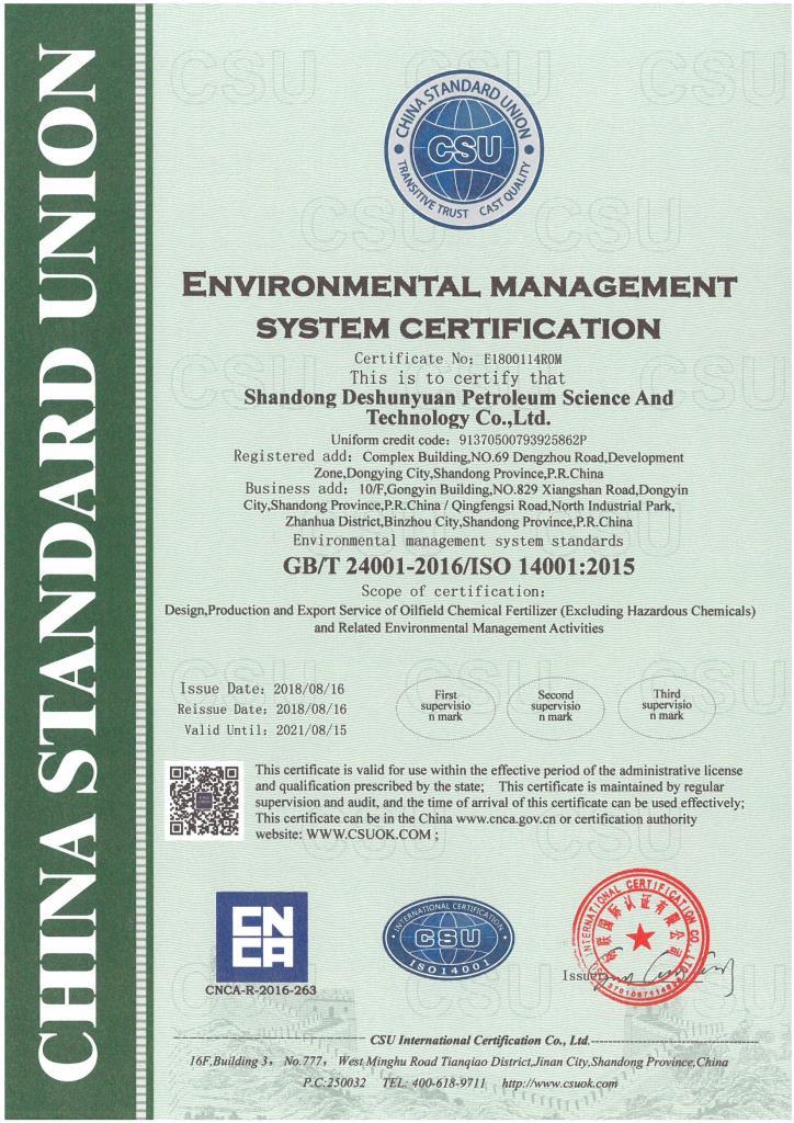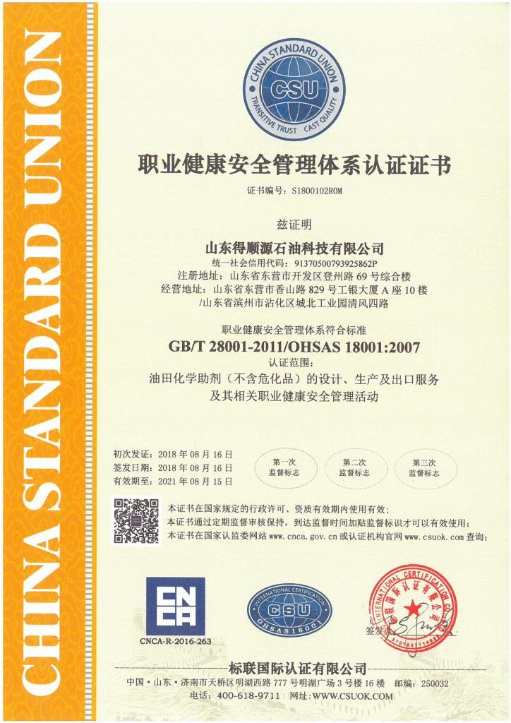 2018年8月22日,公司順利通過(guò)了標(biāo)聯(lián)國(guó)際認(rèn)證公司關(guān)于9000、14000和18000的認(rèn)證監(jiān)督審核,并收到最新版的認(rèn)證證書(shū)。