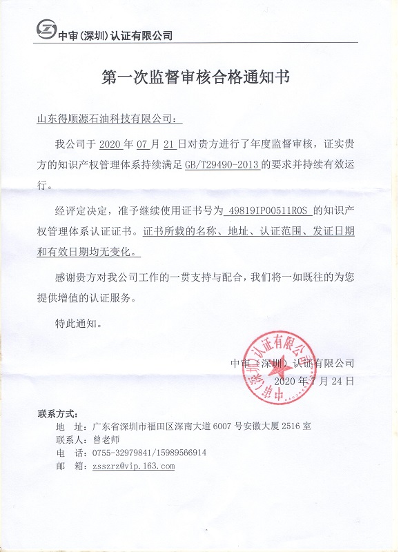 2020年7月30日,公司順利通過知識產(chǎn)權(quán)管理體系第一次監(jiān)督審核,繼續(xù)使用知識產(chǎn)權(quán)管理證書。