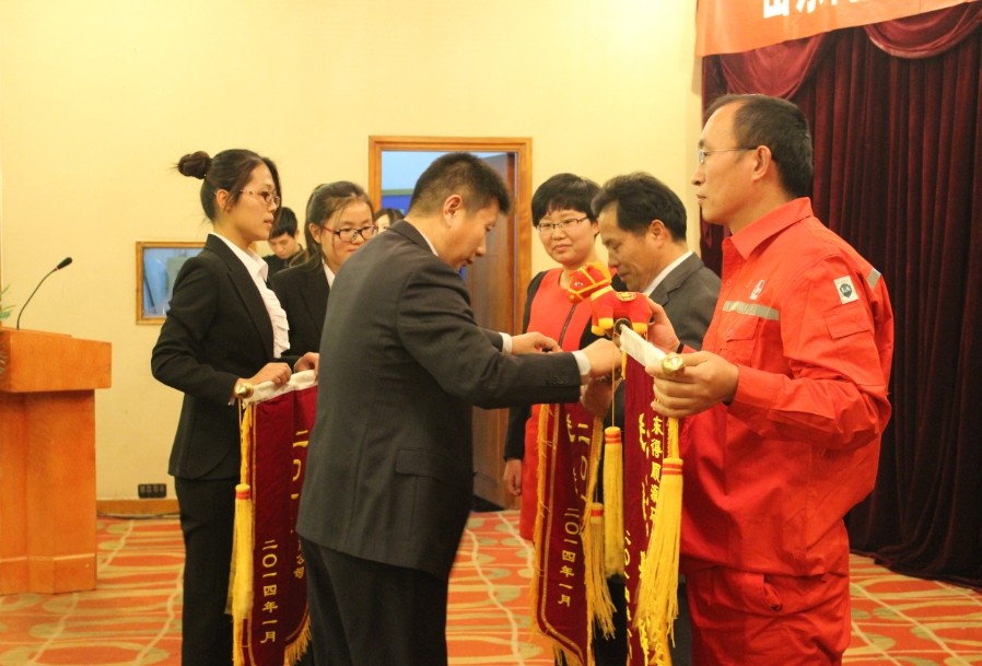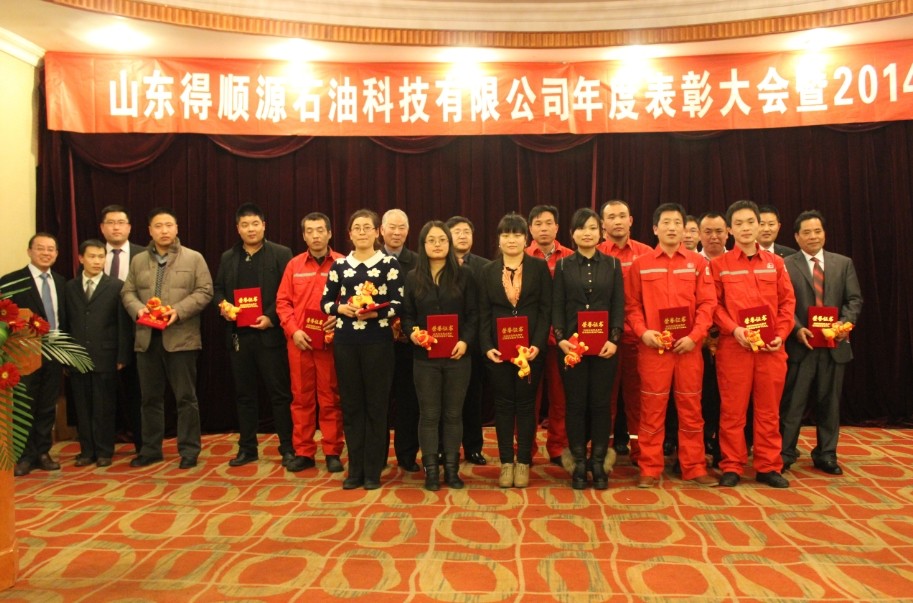 2014年1月23日,總經(jīng)理王樹永等公司高層領(lǐng)導(dǎo),所有中層領(lǐng)導(dǎo),化工廠,鉆井,研究所,機關(guān)各部室員工歡聚一堂,參加山東得順源石油科技有限公司2013年度總結(jié)暨表彰大會,會議由副總經(jīng)理孫衛(wèi)東主持。